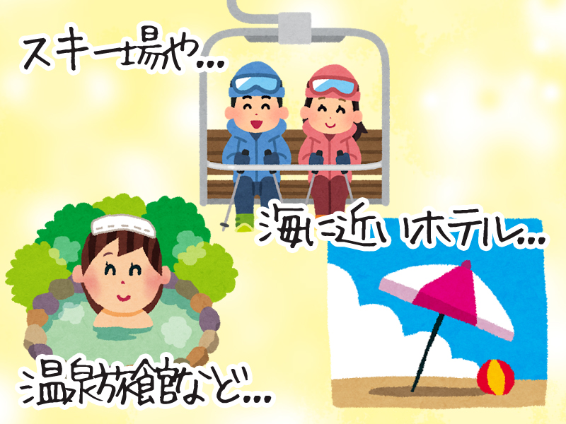 働く場所の閑散期を避け、繁忙期(G.W.、夏休み、冬休み、年末年始など)知っておきましょう。